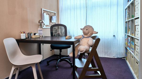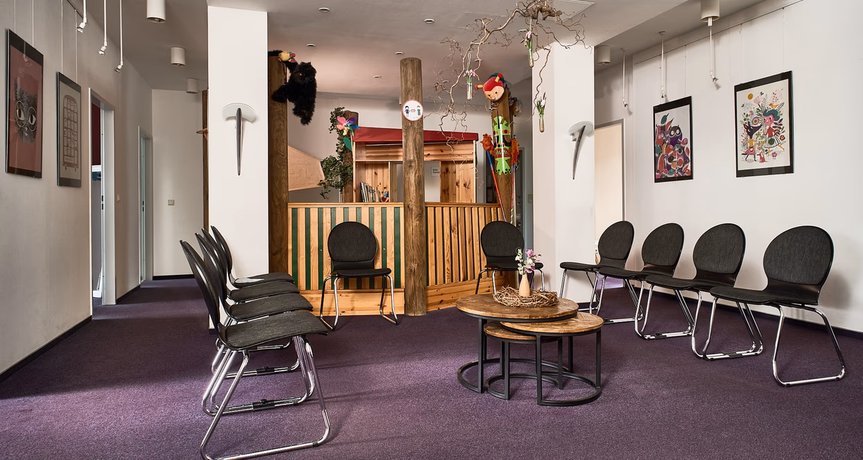 Unsere Praxis verfügt über helle, gut ausgestattete Therapieräume und einen großzügigen Warteraum mit Spielecke für unsere kleinen Patienten.